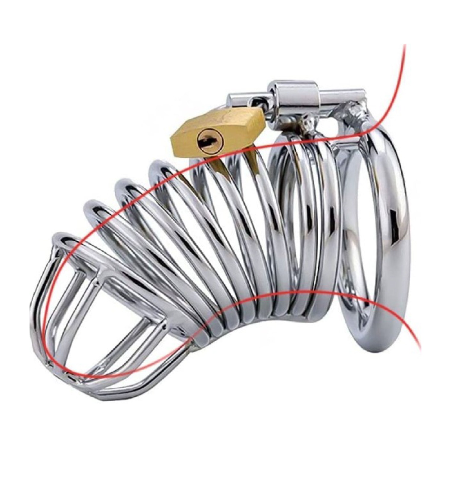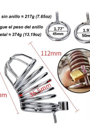 Jaula de Castidad (juguete para adultos) hecha en acero totalmente seguro para el cuerpo con candado para mayor seguridad, lo hacen un divertido juguete para ese juego preliminar. Colócalo en tu pareja cuando tenga el pene en reposo, cierra el candado y guarda muy bien las llaves, pero ojo! no las pierdas.